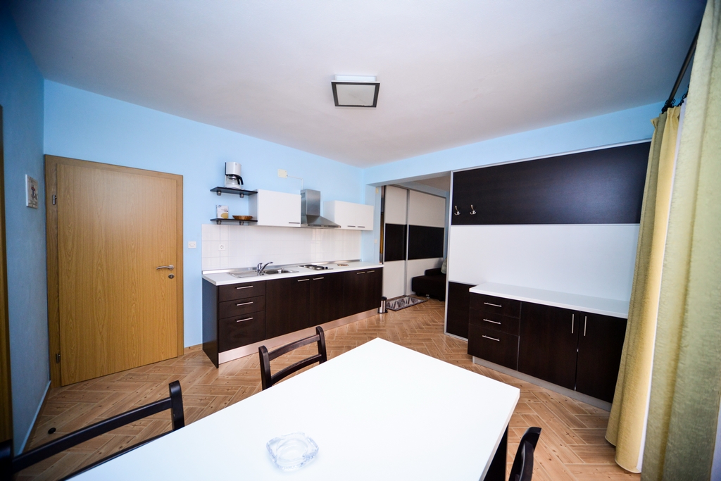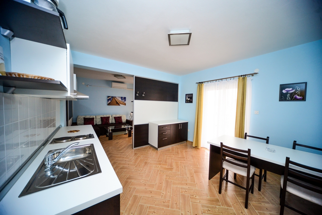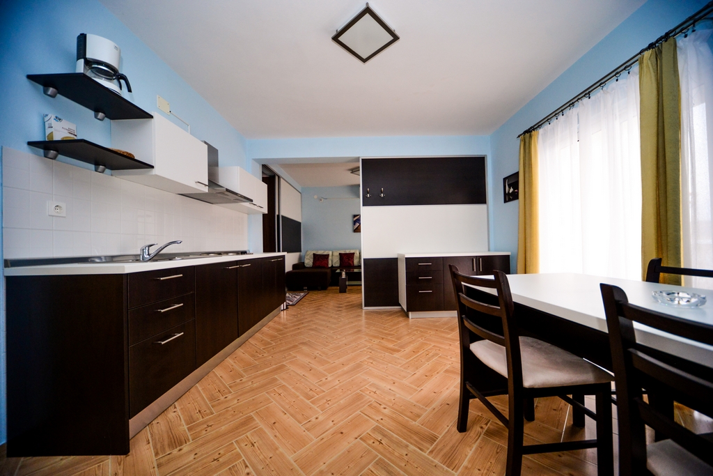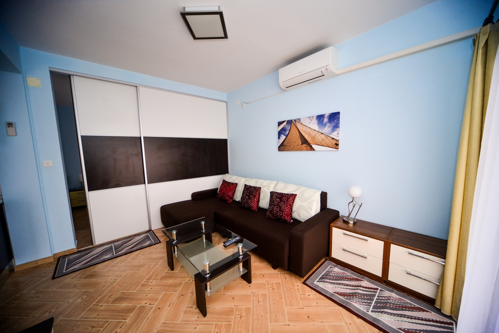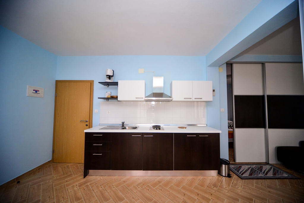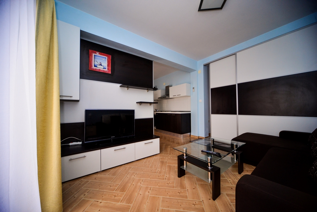 This standard apartment is on the first floor. It contains one double bed for two persons, kitchen, a large cabinet, WC with shower cabin, a 30m2 balcony, air conditioner, LCD TV, SAT TV.
